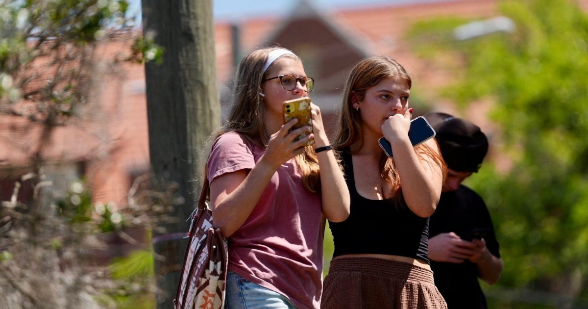 Evacuees watch law enforcement work on Florida State University (FSU) campus after a mass shooting in Tallahassee, Florida, U.S., April 17, 2025.