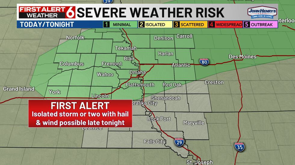 After midnight and through dawn, a few scattered showers and storms will be possible and one or two may have some hail or gusty winds at their strongest.