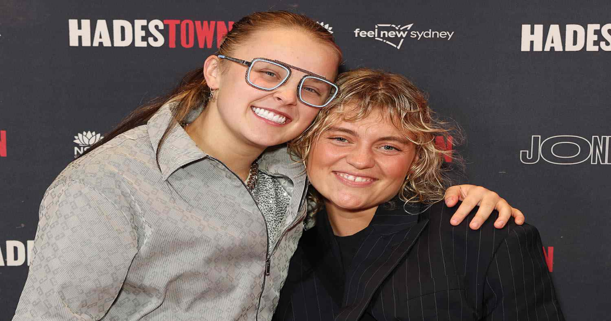 JoJo Siwa and Kath Ebbs attend the Australian premiere of “Hadestown” at Theatre Royal on February 14, 2025 in Sydney, Australia. Photo: