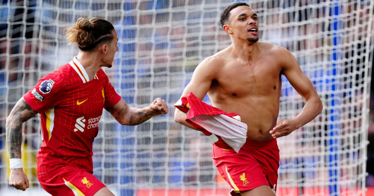 Mohamed Salah hit the post and Diogo Jota rattled the crossbar in a goalmouth scramble, before the ball was cleared for Alexander-Arnold to lash home Liverpool’s 76th-minute winner and then whip his shirt off to celebrate in front of a raucous away end.