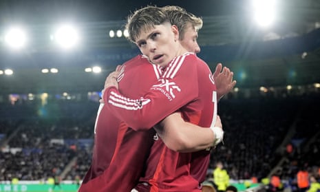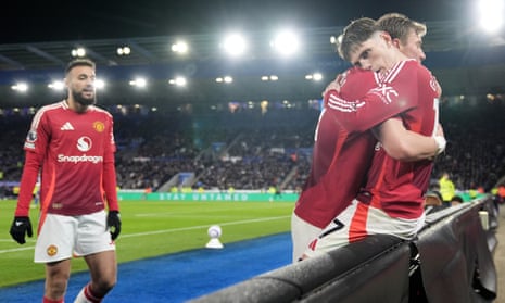 Manchester United’s Alejandro Garnacho (right) and Rasmus Hojlund finally break their scoring drought at the cost of the Foxes. Photograph: Martin Rickett/PA