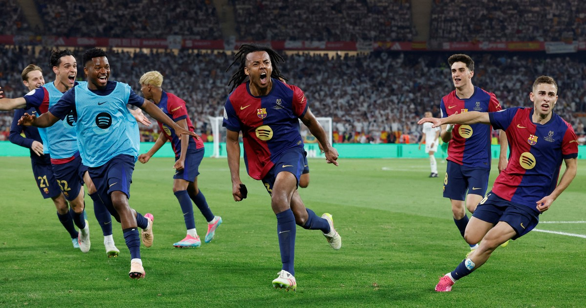 La historia la sentenció Koundé a cinco minutos de que se terminara el alargue. Con un buen sablazo desde afuera del área estampó la pelota contra el palo derecho de Courtois, que nada pudo hacer. Así le dio el 3-2 final al Barcelona, que se consagró en la Copa del Rey nada menos que contra su rival.