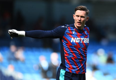 Crystal Palace goalkeeper Dean Henderson warms up ahead of kick-off. Photograph: Peter Powell/Reuters