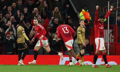 Diogo Dalot adds the cherry on top with a fine fourth. Photograph: Phil Noble/Reuters