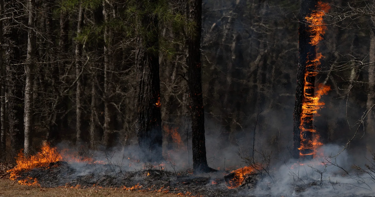 The unnamed blaze was first reported shortly after 10 a.m. local time and has since spread in the Pine Barrens area of southern Ocean County, according to the New Jersey Forest Fire Service. The fire was only 5% contained as of 7 p.m. ET.