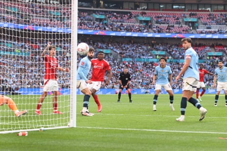 It’s not been a classic, with City dominant – passing with ease, not creating loads of chances but clinical when they got the early chance. A third consecutive final beckons if Forest don’t switch things up.