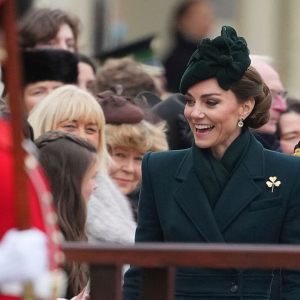 Kate Middleton is back celebrating St. Patrick’s Day! The Princess of Wales is attending the Irish Guards’ St. Patrick’s Day Parade at Wellington Barracks, after missing the event last year…