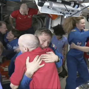 NASA’s stuck astronauts welcome their newly arrived replacements to the space station