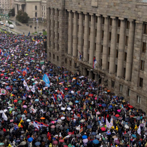 Protesters flood Belgrade in one of biggest anti-government rallies