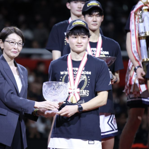 福岡大学附属大濠の湧川裕斗 ウインターカップ2024、男子決勝の福岡大学附属大濠vs鳥取城北は、地力で勝る大濠が77-57で勝利し、3年ぶり4回目の優勝を勝ち取った。 鳥取城北の留学生、ハロルド・アズカに対して渡邉伶音がインサイドで上回ることで、試合開始からの2分半で大濠が8-0とリードする。それでも鳥取城北はすぐに落ち着きを取り戻して反撃開始。持ち前のハードワークを発揮し、アズカを軸としながらも他の選手も積極的に得点を奪うことで、第2クォーター中盤で逆転に成功した。 それでも、ここからは再び大濠の時間帯に。その流れを作り出したのは、スクリーンを巧みに使ってマークを引きはがした一瞬の隙を逃さずクイックリリースの3ポイントシュートを2本連続で決めた湧川裕斗だった。その直後には髙田将吾がスティールからのワンマン速攻に持ち込み、ここから大濠は一気に2桁へとリードを広げて前半を終えると、鳥取城北の攻守のプレー強度に負けずに渡り合った第3クォーターを21-9のビッグクォーターとして、早々に試合に決着をつけた。 優勝を決めた湧川は、喜びの笑顔と涙が混じり合う表情でここまでの道のりを振り返る。「今年は本当に悔しい思いをしてから始まった年で、キャプテンとしてもなかなか上手くいかず苦労したんですけど、最後こうやって日本一になれて、ここまで頑張ってきて良かったとうれしい気持ちです」 1年前のこの日、ウインターカップ決勝で同じ福岡県のライバルである福岡第一に53-63で敗れている。2年生だった湧川は先発を任されていたが7得点と不発に終わっていた。それから自分たちの代を迎え、エースだけでなくキャプテンの責任も背負いチームを引っ張ってきた。インターハイのベスト4、U18日清食品トップリーグでの優勝など様々な経験をしてきたが、結局のところすべてはこのウインターカップで優勝できるかどうかに懸かっていた。 「インターハイぐらいから3ポイントシュートだけじゃなく、ピックからのジャンプシュートやレイアップで点が取れるようになって、そこは成長だと思います」 今日の湧川は34分のプレーで32得点。3ポイントシュートだけでなくフェイクで相手の裏を突いてのレイアップ、ドライブで果敢に切り込んでファウルを誘ってのフリースローなど、多彩なプレーで得点を積み上げた。それは、この1年間での努力の成果だった。 「去年まではただ3ポイントシュートを打つだけの選手で、ディナイされたら何もできなかったのですが、今年からプレーメークも任せてもらって、そこでよりバスケを理解してズレを作っていくためにNBAやBリーグを見て知識を増やして、スキルをつけていくことをずっとやってきました」 特に参考にしたのはNBAウォリアーズの試合だ。「いろんな戦術がある中で相手がどう動いたらどうプレーするかの選択肢を、ウォリアーズを見て学びんで知識がついてきました。オフェンスはウォリアーズ、ディフェンスはティンバーウルブズを見ていました」と湧川は説明する。 「インターハイぐらいから3ポイントシュートだけじゃなく、ピックからのジャンプシュートやレイアップで点が取れるようになって、そこは成長だと思います」。まさにその通りのプレーが決勝の舞台で出せた結果の32得点だった。 これで湧川の高校バスケは終わり。次のステージに向けて、自分の成長するイメージはすでに出来上がっている。「3ポイントシュートという武器が自分の中では一番強いので、そこは持ち続けて、3ポイントシュートのフェイクからドライブする、アシストするという、もっとフィジカルも状況判断も鍛えて、さらにプレーの幅を広げたいです」 BASKET COUNT ******* **************************************************************************** ******* ****************************************************************************