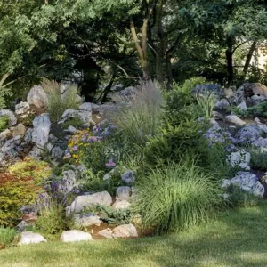 This rock garden has a little of everything. Larger rocks add weight to the area. Alpine plants peek out among the smaller rocks A low rock wall added height, which…