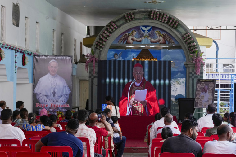 Among those trying to catch a glimpse of Francis’ coffin as it passed through Rome were Savaraachi Christi, 52, who told NBC News he was originally from Sri Lanka but has lived and worked in Italy for 26 years.