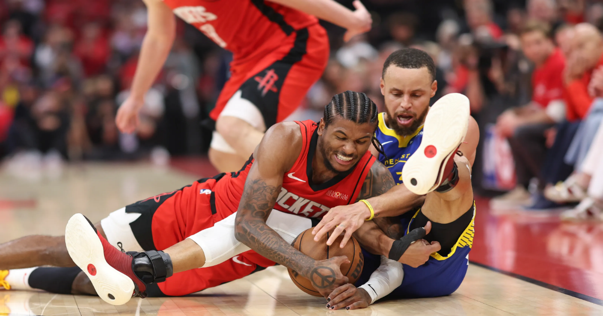 The physical series also had its contrast – the back-and-forth shotmaking between the teams near the end of the first half when Golden State’s Steph Curry and Houston’s Fred VanVleet, Alperen Sengun and Jalen Green traded 3-pointers.