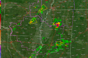 It is moving in the general direction of Tupelo. The environment will become slightly less unstable the further northeast it goes, but the shear will remain just as strong so there is no sign the storm will weaken.
