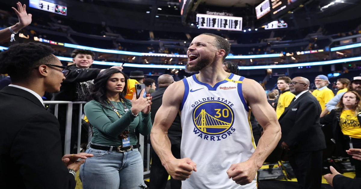 (Top photo of Steph Curry celebrating after Saturday’s win: Ezra Shaw / Getty Images)