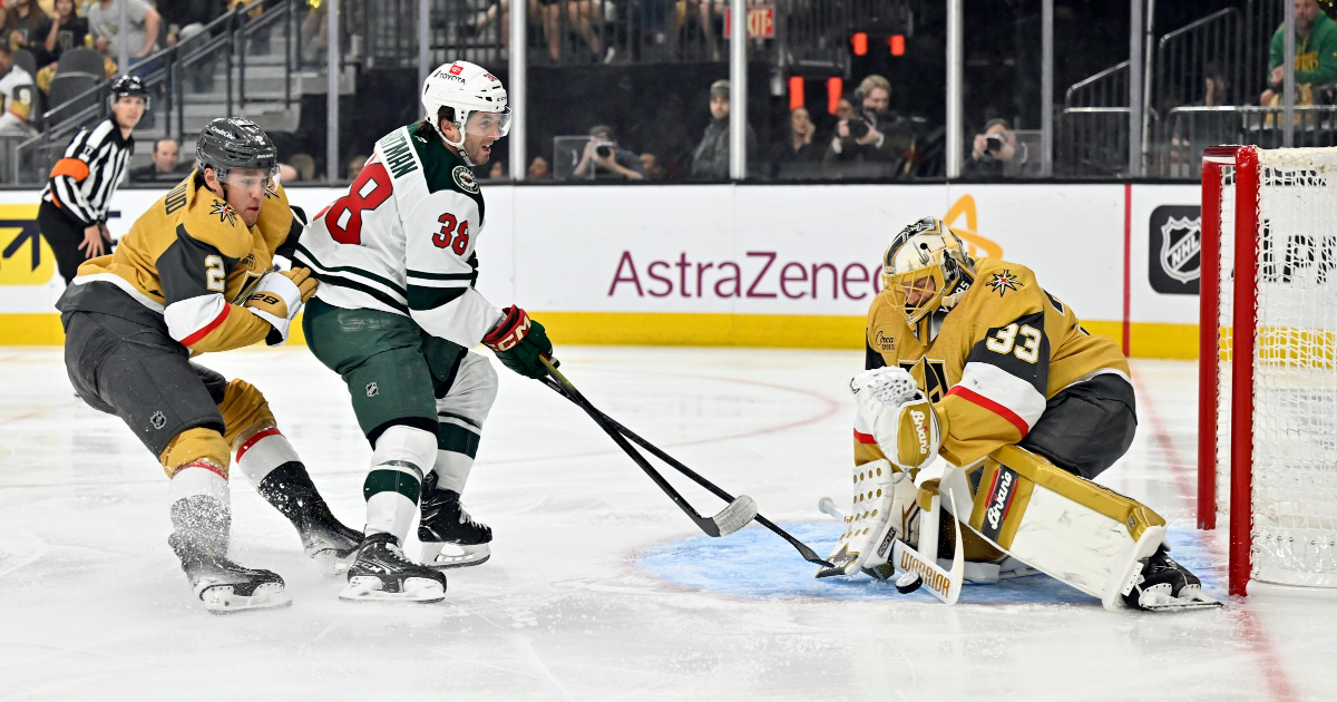 The Wild picked up where they left off in the second, with Kaprizov’s attempt off a 2-on-1 dribbling behind Hill, but the Golden Knights did improve.