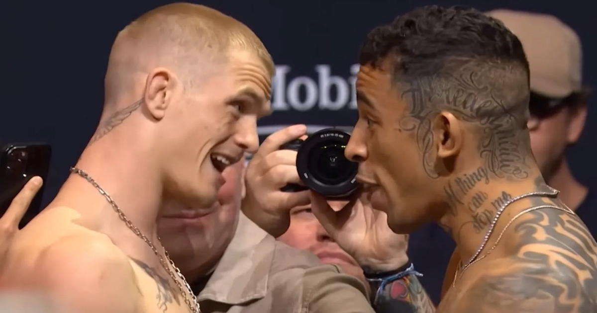 Round 2 – Again, Pereira backing up here while Magomedov presses. Front kick by Magomedov. Big knee by Pereira as Magomedov went for the takedown. Magomedov tries to press Pereira against the fence, but Pereira breaks free. Pereira doing a lot better this round. Jabs by both. The crowd is booing. Not a ton going on. Solid jab by Pereira. Both guys throwing little and landing even less. The crowd is not happy. The bell rings.