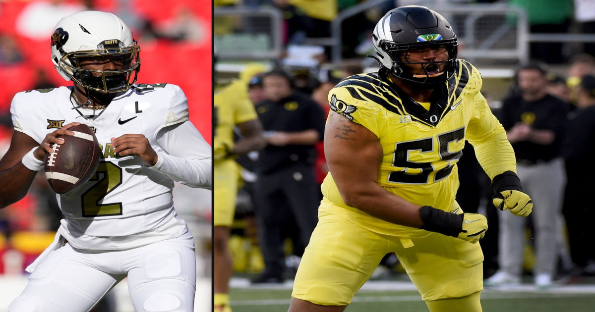 (Photos of Shedeur Sanders, left, and Derrick Harmon: Ed Zurga, Steve Dykes / Getty Images)