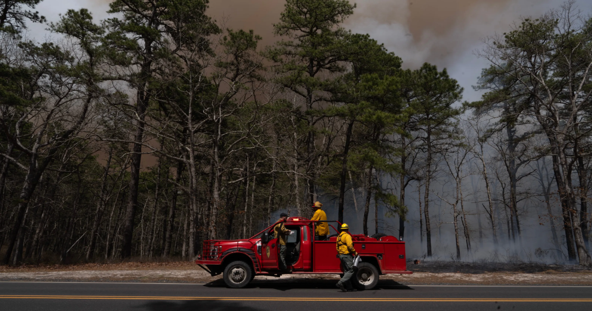 The fire is located near Ocean and Lacey Townships in Ocean County, New Jersey, according to the Forest Fire Service. It is near the state’s east coast.