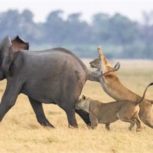 el elefɑnte atɑcó aƖ león pero recibió un mal final