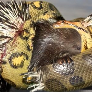 La pitón gigante debe arrepentirse de intentar tragarse un erizo. – nature