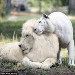 El híbrido de un león blanco y un tigre blanco da a luz a los animales más bellos del planeta