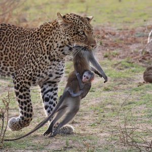 Un mono bebé se aferra a su madre mientras un leopardo se los lleva para comer, pero lo que sucede después es inesperado