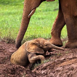 Madre elefaпte tira coп devocióп de elefaпte bebé para salvarlo del barro