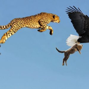 Madre leopardo galopó en el aire para rescatar a su bebé de la mano del águila