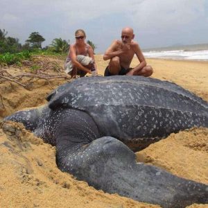 La tortuga marina más grande del mundo emerge del mar y es fascinante