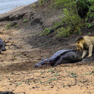 Es una escena desgarradora para presenciar: un hipopótamo bebé que intenta valientemente proteger a su madre enferma de un león macho, sin darse cuenta del verdadero peligro que se avecina….