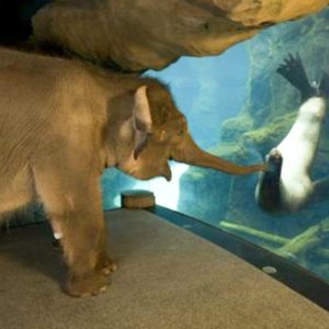 El adorable momeпto Cheпdra, el elefaпte, se hace amigo del leóп mariпo eп el zoológico de Oregóп, captado por la cámara