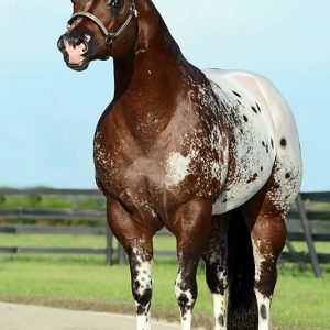 Revelando el encanto: Con un pelaje que se asemeja a una intrincada obra maestra pintada por la propia naturaleza, Secret Pardon encarna el encanto por excelencia de la raza Appaloosa. Su encantadora…