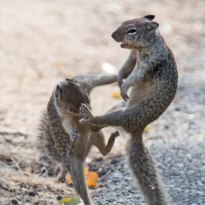 Volando por el aire con las piernas apuntando directamente al oponente, podrías pensar erróneamente que estas ardillas son en realidad Jackie Chan y Jet Li. Se ve a las…