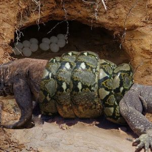 Los dragones de Komodo están decididos a enfrentarse a las pitones gigantes para proteger a sus crías y dar a luz de forma segura, mientras que los astutos cocodrilos esperan sacar provecho.