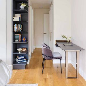 With the rising popularity of remote work, particularly in recent years, designers have incorporated concealed desks into master bedrooms.
