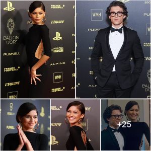 “Zendaya Stuns in a Captivating Black Chain Gown at the Glamorous Ballon d’Or Awards in Paris, Joined by Tom Holland for Their Highly-Anticipated First Red Carpet Appearance as a Confirmed Couple”