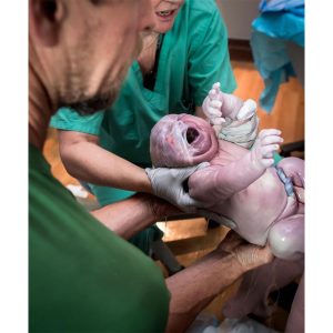 Después de cuatro días de trabajo de parto, el recién nacido es bienvenido al mundo con los brazos abiertos y una sonrisa.