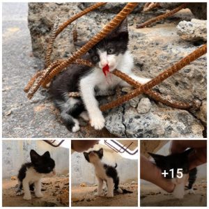 Un gatito destrozado se encontraba en un sitio de construcción, buscando ayuda, pero sin encontrar a alguien que viniera en su auxilio.