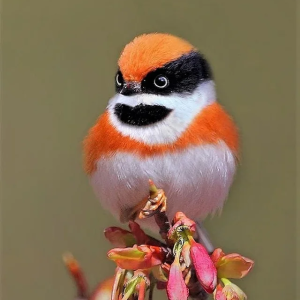 Meet the cutest flying bandit ever – the Black-throated Bushtit, with its orange plumage, big black grin, and wrap-around mask
