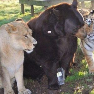 The trio of bear, tiger and lion have spent most of their lives together and now, they eat, sleep and play together, having a beautiful friendship that even humans admire….