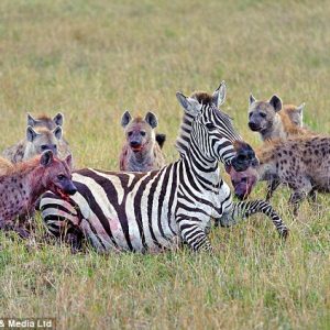 This is the devastating moment a heavily pregnant zebra was killed by hyenas in Africa. It was a scene that photographer Marc Mol found incredibly difficult to watch – other…