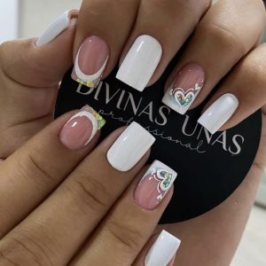 El diseño más natural y moderno para uñas blancas cortas con delicados estampados.