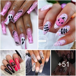 Más de 70 Diseños de Uñas Rosas Espeluznantes para un Encantador Look de Halloween
