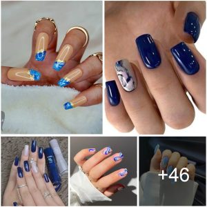 Ideas de Uñas en Azul Oscuro Fascinantes con Acentos Glamurosos que te Dejarán con la Boca Abierta