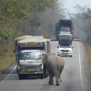Cute Moment Captured as Greedy Wild Elephant Halts Passing Trucks to Steal Sugarcane