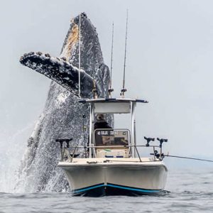 Once-In-A-Lifetime Footage Of A Massive Humpback Whale Leaping Out Of The Water Next To A Fishing Boat