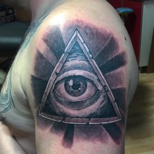 Revealing an Intricately Designed Pyramid Tattoo: Possessing an Exceptional and Distinctive Quality, Evoking Mystery and Fascination.