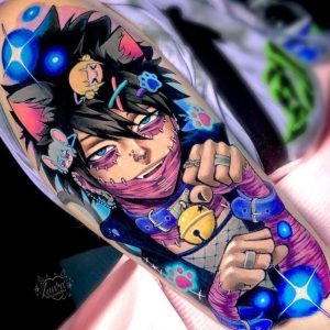 Immerse Yourself in the Dynamic Universe of New School Anime Tattoos by Laura Annunaki