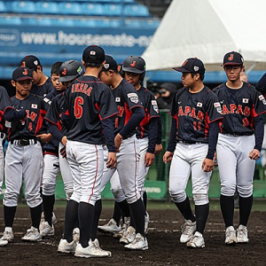 試合レポート 第11回 BFA U12アジア野球選手権 仁志敏久 石﨑悠士郎 古畑太誠 韓国 11月27日、愛媛県松山市の坊っちゃんスタジアムで「第11回 BFA U12アジア野球選手権」のスーパーラウンドが始まり、侍ジャパンU-12代表は韓国と対戦。オープニングラウンド同グループから進出した中国との勝敗は持ち越すため1勝0敗からのスタートで、勝てば決勝進出が大きく近づく一戦だったが、0対2で敗れた。 グループリーグを首位で通過したチーム同士の一戦は、時折降る雨や断続的に吹く強風の中、ともに好投手を45球以下(※)でつぎ込む投手戦となった。 ※大会規定の投球制限により1日46球以上を投げると、中2日の休養が必要となり29日の最終日に登板できない 侍ジャパンの先発は左腕の福田周吾(IBCレイカーズ)。「強いチーム相手で緊張はありましたし圧も強かったですが、自分らしい投球ができました」と振り返ったように110キロ台中盤から後半のストレートと、代表選出後に習得したというカーブを使った緩急の効いた投球で韓国打線を抑えていく。また、2回2死三塁の場面では、相手が狙ったホームスチールに対して「すごくビクビク動いていくので何かしてくると思っていました」と冷静に対処。ホームプレートから足を外して本塁へ送球すると、守備陣も冷静に挟殺で三塁走者をアウトにしてピンチを脱出。福田は3回2安打無失点でマウンドを降りた。 一方で打線は、韓国先発チャン・ジスの175cmの長身から投げ下ろす120キロ前後の速球と縦に落ちる変化球のコンビネーションの前に苦戦。1回と3回にはそれぞれ牽制死や盗塁死もあり流れを掴めず。3回は2死走者無しから満塁のチャンスを作るが、代わった2番手のパク・ソンホンに3番の古畑太誠(深川ジャイアンツ)がキャッチャーフライに抑えられ先制はならず。 4回からは石﨑悠士郎(本郷北学童野球クラブ)が登板し韓国打線を抑えていくが、5回の攻撃では石﨑が無死から四球で出塁したものの牽制死に倒れ、後続が連続三振に抑えられ無得点。その裏に石﨑は2死を取るも、2死からマウンドに上がった一寸木健翔(西湘シーホース)が「甘いところに入ってしまい決めきれませんでした」と悔やんだように、相手打線に失投をとらえられ連打で先制を許す。さらに三塁手・立岩駿(古高松ブルースターズ)の失策もあり2点目を追加された。 反撃したい侍ジャパンではあったが、最終6回の攻撃も三者凡退に抑えられ試合終了。毎回の9三振を喫するなど3安打に抑え込まれ投手戦に敗れた。 これで韓国はオープニングラウンドでチャイニーズ・タイペイも破っているため2勝0敗。28日の中国戦(現在0勝2敗)で仮に敗れても、1敗で並ぶ可能性のある侍ジャパンとチャイニーズ・タイペイには勝利しているためスーパーラウンド1位通過での決勝進出を決めた。 一方、侍ジャパンはスーパーラウンド最終戦で、28日14時から坊っちゃんスタジアムで同じく1勝1敗のチャイニーズ・タイペイと対戦。決勝進出残り1枠をかけた決戦に臨むこととなった。 監督・選手コメント 仁志敏久督 「お互いに打てないことは想定内でしたが、2アウトからの連打は想定外でした。1つ上のレベルのチームと戦えて初めて気づけたこともあると思うので、それを明日できたらと思います。試合に入る緊張感は大会に入って初めてしっかりできたかなと思います。(夜のミーティングでは)試合の振り返りをして、ミスがなぜ起きたのかを分からないといけないですし、何を注意すべきか、本人たちに考えてもらえればと思います」 石﨑悠士郎(本郷北学童野球クラブ) 「投手陣は良かったのですが、打線が援護できませんでした。点が入らない焦りもあって走塁の判断ミスをしてしまいました。決勝で韓国にリベンジできるように、まずは明日に向けて頑張りたいです」 古畑太誠(深川ジャイアンツ) 「自分がチャンスで打っていれば勝てた試合だったので悔しいです。今日のことを反省して、明日打つために準備をしていきたいです」 大会概要 出場選手 大会期間 2024年11月23日~11月29日…